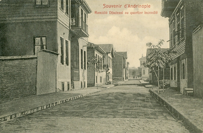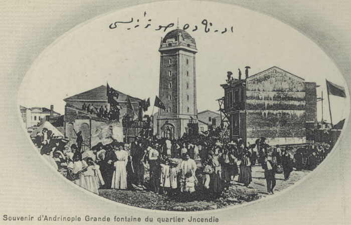 Ottoman times, aftermath of a fire, with the fire observation tower visible in the distance