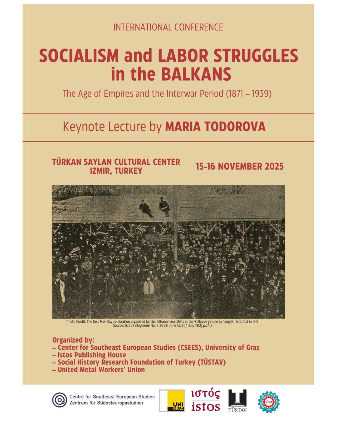 Conference: ‘Socialism and Labor Struggles in the Balkans: the Age of Empires and the Between-Wars (1871-1939)’, 15-16 November 2025 - Centre for South-East European Studies - University of Graz - Turkan Saylan Cultural Centre, İzmir - flyer: - programme: