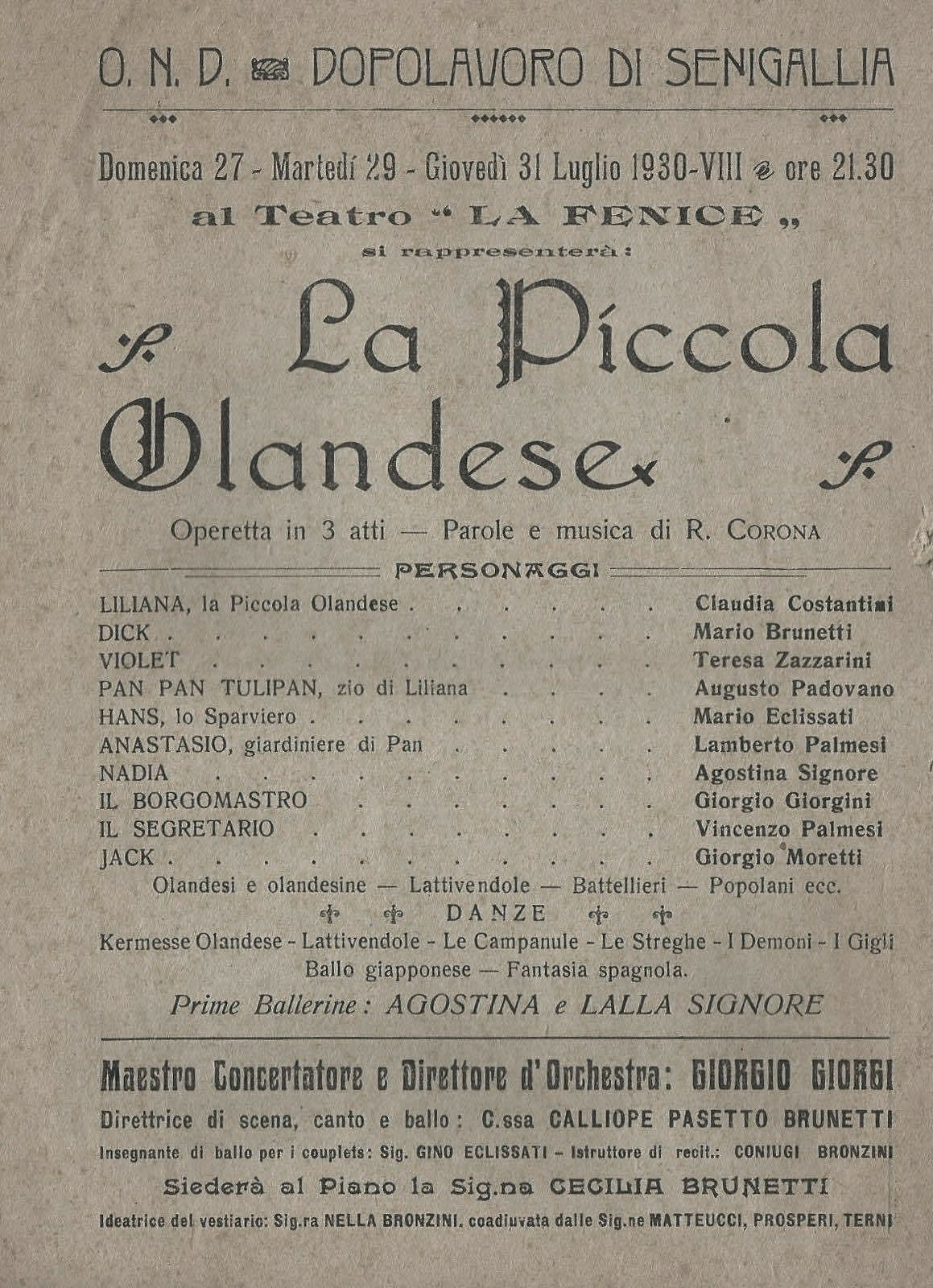 Centrale, “La Piccola Olandese” [The small Dutch girl] theatre production early 1940s. Below other school productions from the 1940s.