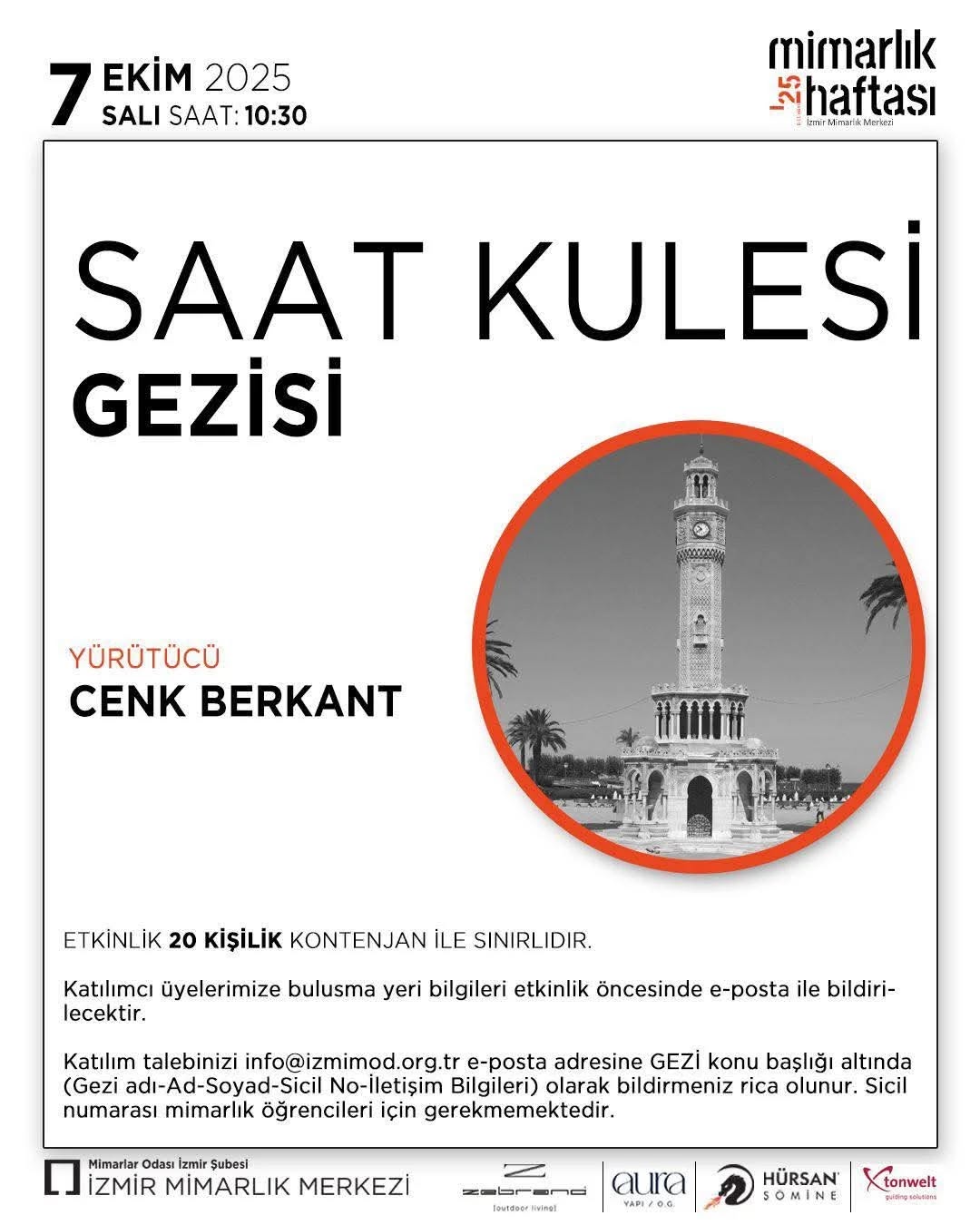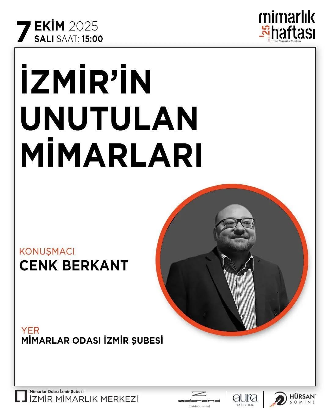 Sunum: ‘İzmir'in unutulan mimarları’, Doç. Dr. Cenk Berkant, 7 October 2025 - Mimarlar Odası, Izmir - poster: - tur: