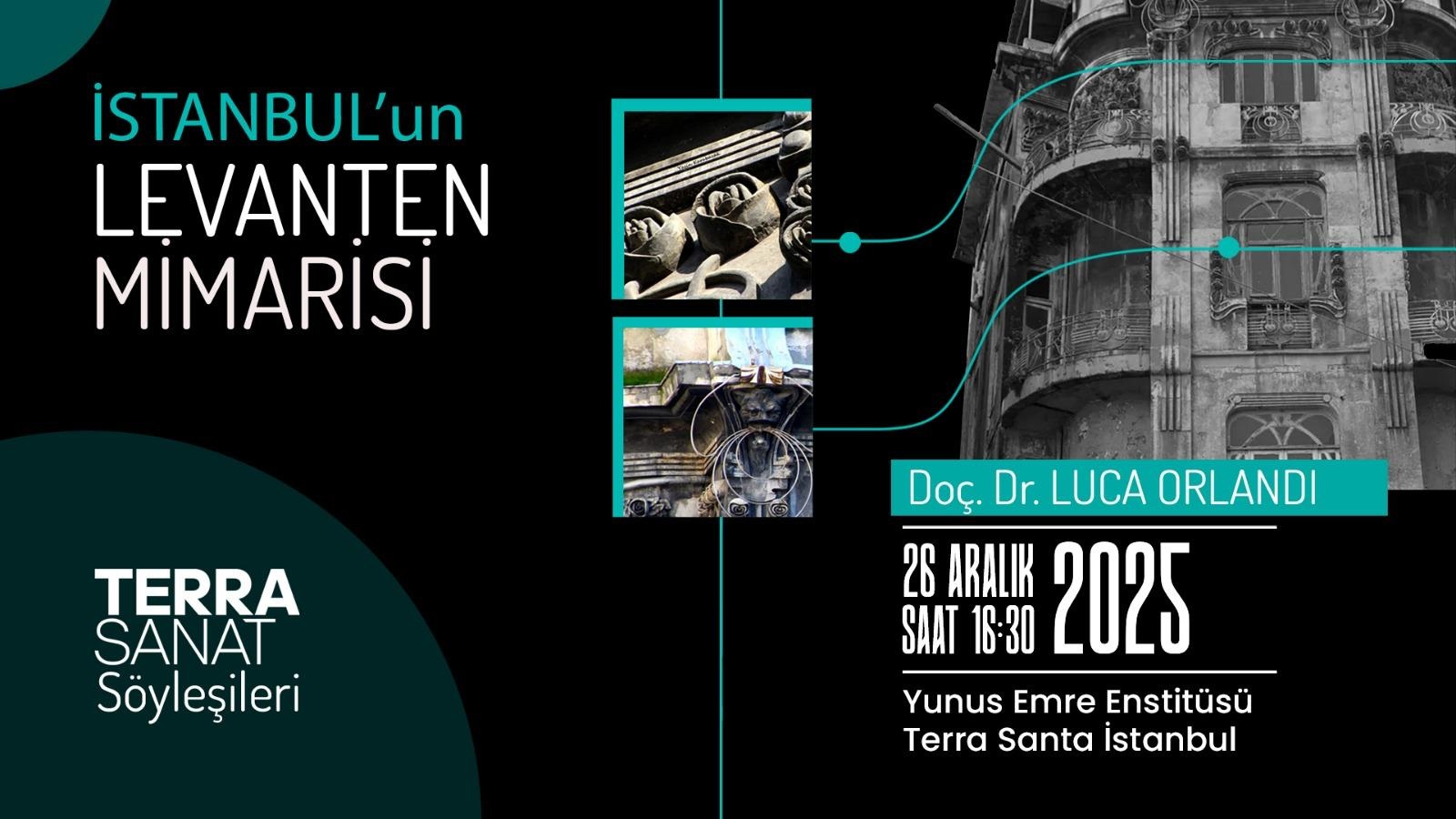 Presentation: ‘İstanbul’un Levanten mimarisi’ [Levantine Architects of Istanbul], Doç Dr Luca Orlandi, 26 December 2025 - Terra Santa, Beyoğlu, Istanbul - poster: - presentation video in Italian: - wider presentation with also Assoc. Prof. Dr. Hatice Adıgüzel and Assoc. Prof. Dr. Seda Kula in Turkish video: