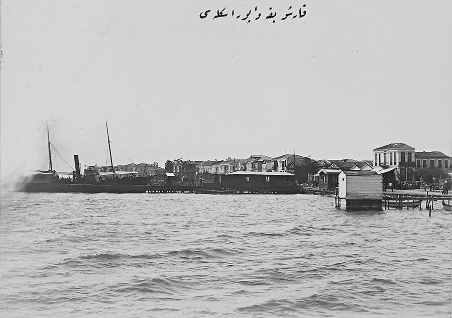 The ‘English’ pier at the northern end of Punta with rail connection to the interior, part of the Smyrna-Aidin Railway company.