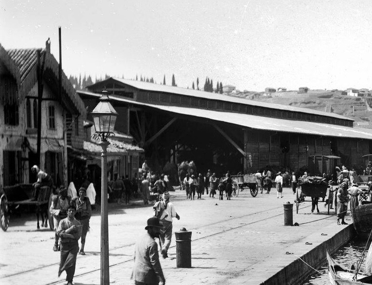 This is the Maritime train station, across the Customs’ Pier. The building ceased to serve as a station around 1900 and was then leased to the Smyrna Fig Packers Ltd. syndicate.