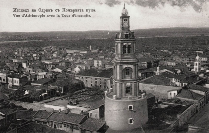 Ottoman times, aftermath of a fire, with the fire observation tower visible in the distance