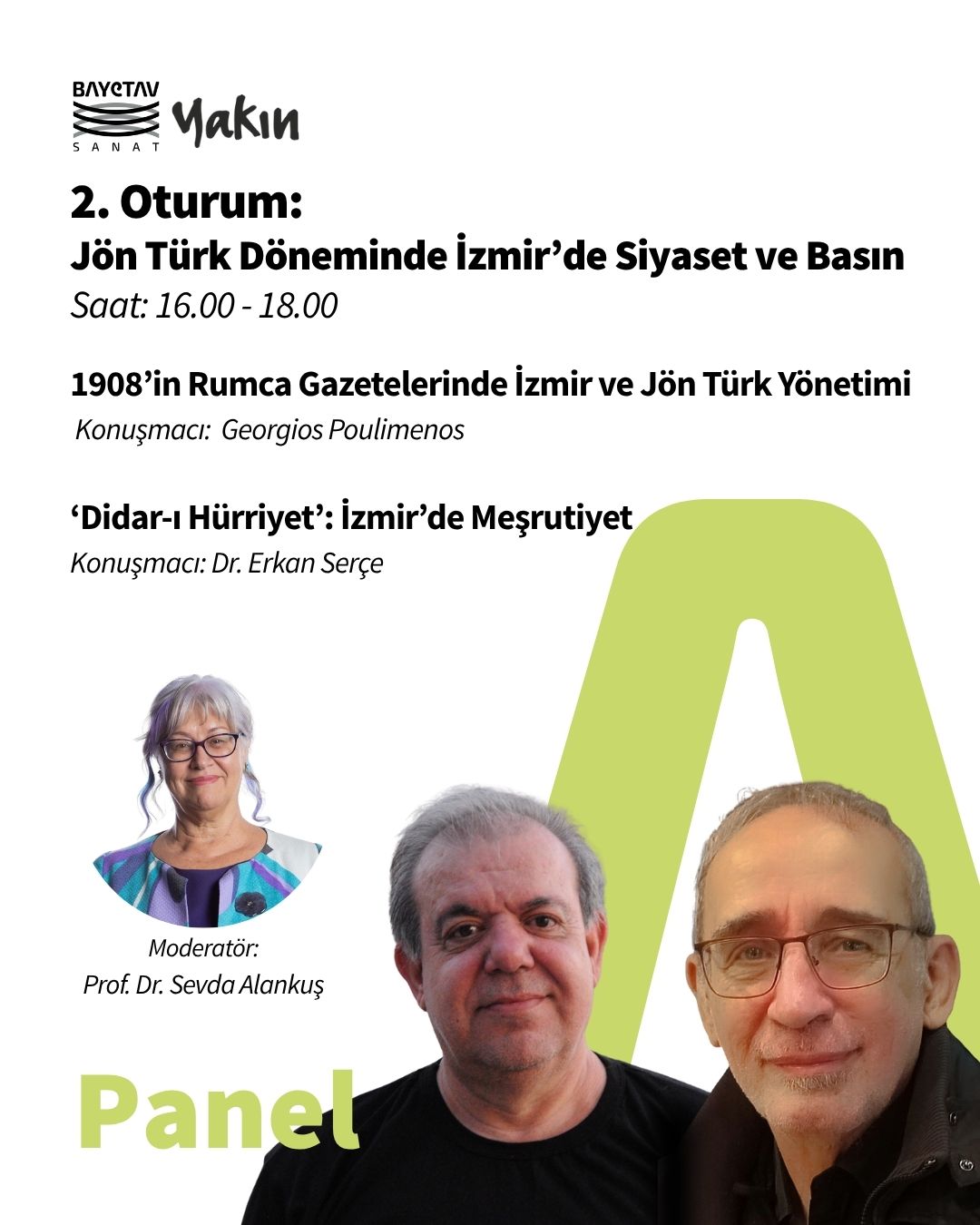 Oturum: 1908’in Rumca Gazetelerinde İzmir ve Jön Türk Yönetimi – Georgios Poulimenos & ‘Didar-I Hürriyet’: İzmir’de Meşrutiyet – Erkan Serçe, 4 October 2025 - Bayetav Sanat, Bornova, Izmir - poster: