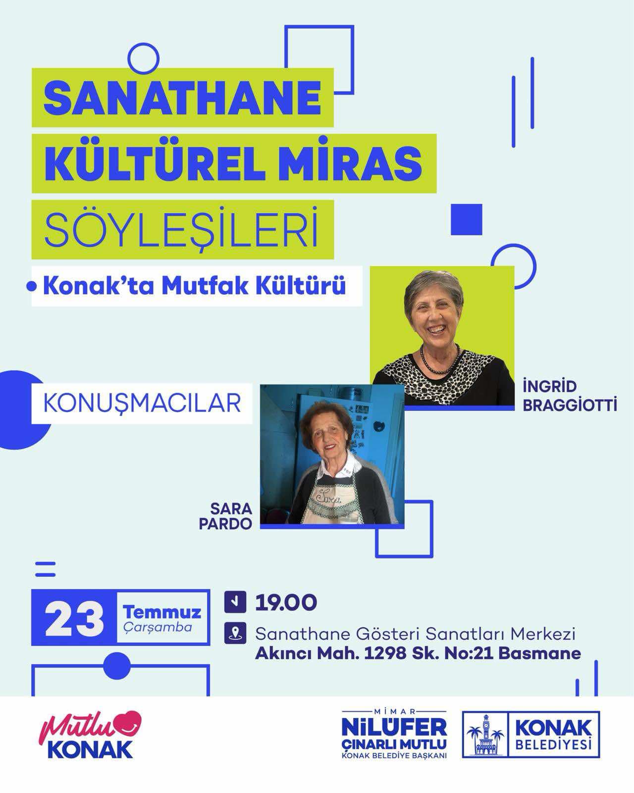 Söyleşi: Konak’da Mutfak Kültürü, Ingrid Braggiotti & Sara Pardo, 23 July 2025 – Sanathane Gösteri Sanatları Merkezi, İzmir - poster: