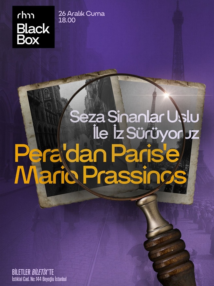 Söyleşi: ‘Pera’dan Paris’e Mario Prassinos’, Seza Sinanlar Uslu, 26 December 2025 - İşbankası RHM Black Box, Beyoğlu, Istanbul - poster: