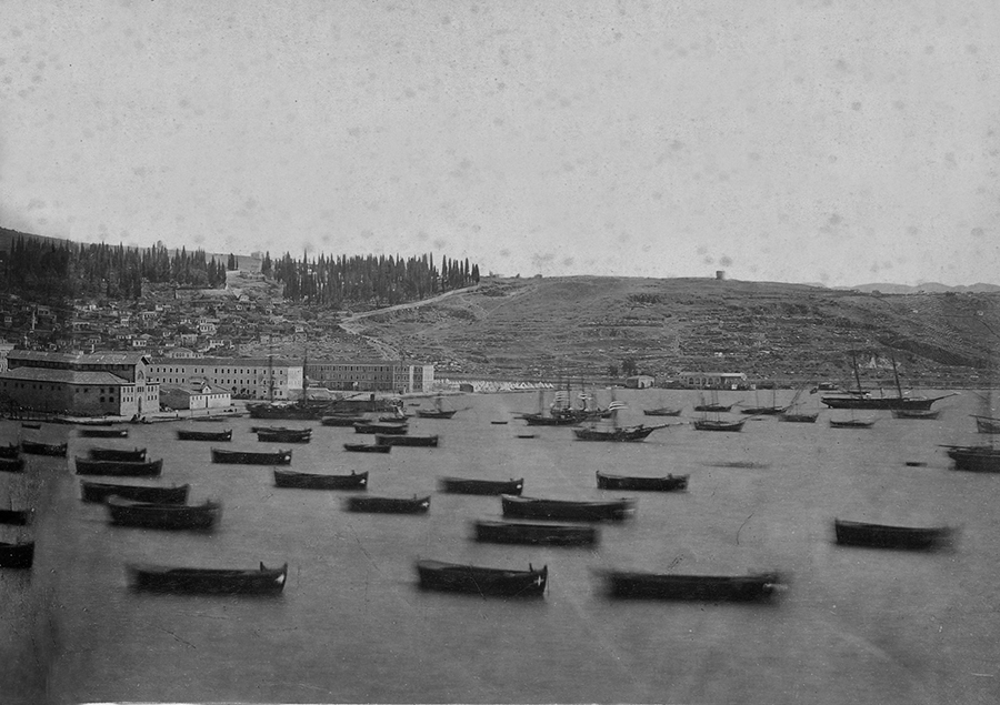 The date of the oldest photo of Smyrna is not known, but it may have taken place at the time of the Crimean War (1853-1856) when photography started becoming more widespread, but still rudimentary. Below is a selection of images from this period till around 1900, though in most cases no date is indicated in the image, clues in the photos have to be used for an educational guess. Grateful for the analysis help from Achilleas Chatziconstantinou and George Poulimenos.