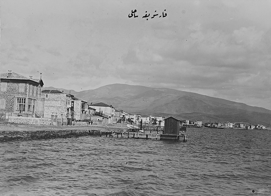 Sea-side mansions in Güzelyalı. Virtually none of these survive today, the sea has been filled considerably and high rises dominate merging the urban fabric with the greater Izmir metropolis. In former times this neighbourhood was favoured by high ranking Ottoman officials and well-to-do minorities including Armenians and Levantines.